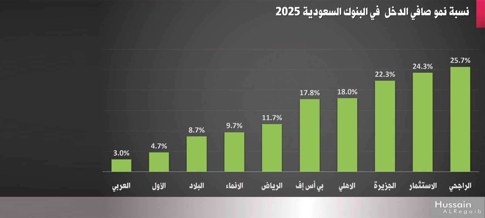 شهد القطاع المصرفي السعودي في عام 2025 استمراراً لوتيرة النمو في الأرباح، مدفوعاً بتحسن صافي دخل التمويل والاستثمار، وزيادة دخل العمولات الخاصة، وتحسن كفاءة إدارة المخصصات الائتمانية، وبحسب البيانات المالية المعلنة، ارتفعت أرباح معظم البنوك الكبرى والمتوسطة بنسبة تتراوح بين 9 % و26 %، في حين سجلت بعض البنوك أداءً أقل توازناً على مستوى الأرباح الفصلية، ارتفاع الأرباح السنوية مقابل تحسن ملحوظ في الأداء التشغيلي، على صعيد الأداء السنوي، تصدّر البنك الأهلي السعودي قائمة البنوك من حيث الأرباح المحققة بنهاية 2025، مسجلاً 25.01 مليار ريال بارتفاع نسبته 18 % مقارنة بعام 2024، يليه مصرف الراجحي بأرباح 24.79 مليار ريال (+26 %)، ثم بنك الرياض بـ10.41 مليارات ريال (+12 %)، والبنك السعودي الأول بـ8.45 مليارات ريال (+5 % تقريباً)، والبنك السعودي الفرنسي بـ5.35 مليارات ريال (+18 %)، وعلى الرغم من اختلاف حجم البنوك، فقد كان العامل المشترك بين معظمها هو ارتفاع صافي دخل التمويل والاستثمار نتيجة نمو محفظة القروض والسلف، وزيادة العوائد من الاستثمارات، إضافة إلى تحسين إدارة المخصصات الائتمانية، وهو ما أسهم في خفض الضغط على صافي الأرباح، على سبيل المثال، انخفض صافي مخصص التمويل والموجودات المالية للبنك السعودي الفرنسي بنسبة 16.2 %، وهو ما عزز صافي الدخل، كما سجل بنك الرياض انخفاضاً كبيراً في المخصصات الفصلية للربع الرابع 2025 بنسبة 50 % مقارنة بنفس الربع من العام السابق، مما انعكس إيجابياً على صافي الربح الفصلية.
