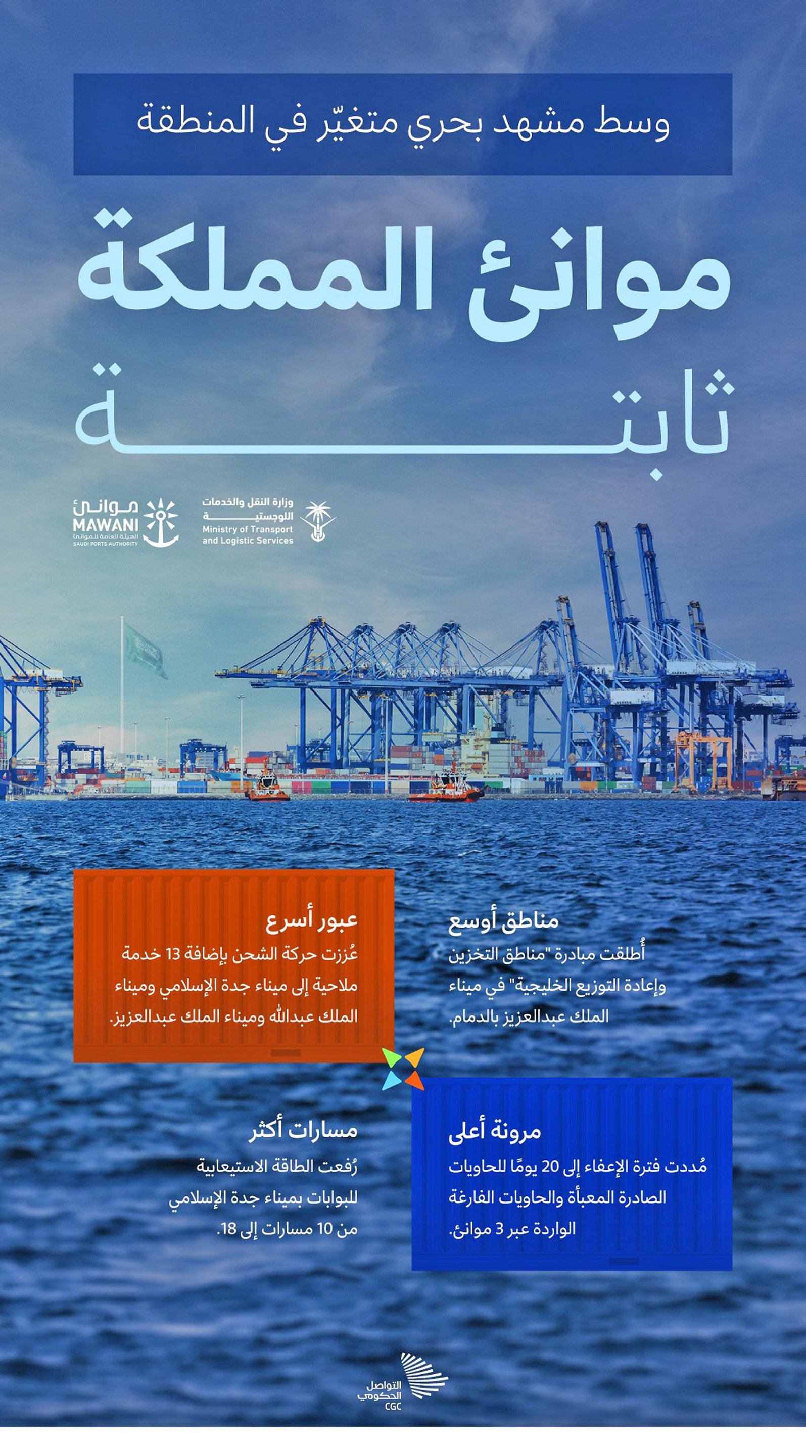 ساهمت أربعة محددات رئيسة في تعزيز مكانة موانئ المملكة وترسيخ ثباتها وسط مشهد بحري متغير في المنطقة، تمثلت في التوسع اللوجستي، وتسريع حركة الشحن، ورفع المرونة التشغيلية، وزيادة الطاقة الاستيعابية، في وقت تشهد المنطقة تحديات متسارعة في سلاسل الإمداد وحركة التجارة البحرية، وتأتي تلك الجهود بالتعاون بين وزارة النقل والخدمات اللوجستية والهيئة العامة للموانئ (موانئ)، ضمن منظومة متكاملة تستهدف رفع كفاءة القطاع اللوجستي وتعزيز تنافسية الموانئ السعودية إقليميًا وعالميًا.